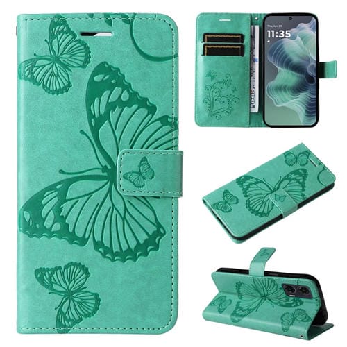 Funda de Cuero con Tapa y Mariposa en Relieve 3D para Motorola Moto G35 (Verde)