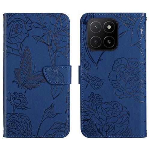 Funda de Cuero con Tapa y Mariposas en Relieve para Honor X5B 4G / X5B Plus 4G Ht03 (Azul)