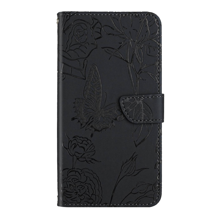 Funda de Cuero con Tapa y Mariposas en Relieve para Motorola Moto G Play 2025 (Negro)