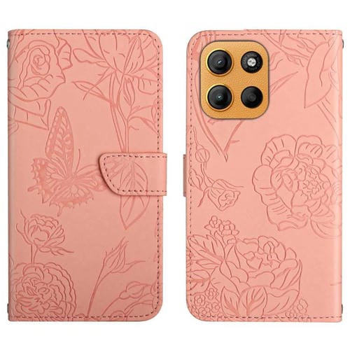 Funda de Cuero con Tapa y Mariposas en Relieve para Motorola Moto G Stylus 5G 2025 (Rosa)