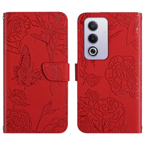 Funda de Cuero con Tapa y Diseño de Mariposas En Relieve para Oppo K12X 5G Global Ht03 (Rojo)