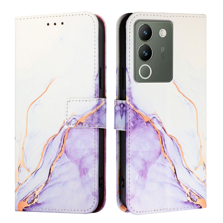 Funda de Cuero con Tapa y Diseño de Mármol para Teléfono Vivo V30 Lite 5G Global Pt003 (Blanco y Morado)