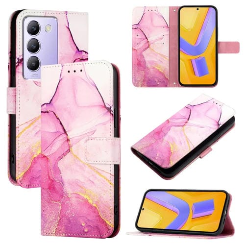 Funda de Cuero con Tapa y Diseño de Mármol para Vivo Y100 Idn/Y200E Pt003 (Rosa, Morado y Dorado)