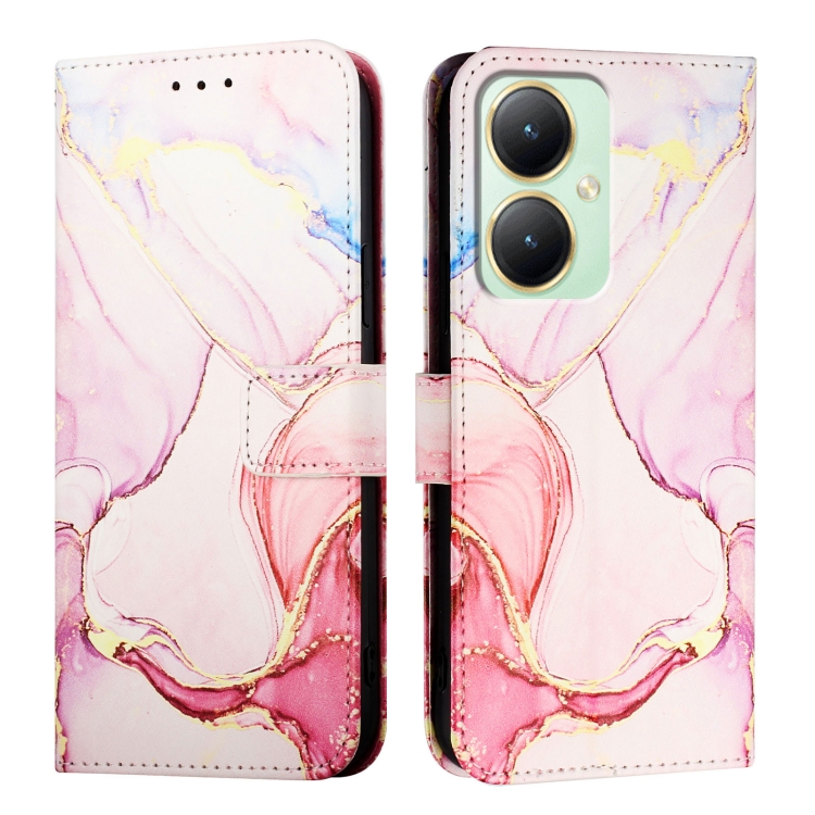 Funda de Cuero con Tapa y Diseño de Mármol para Vivo Y27 4G Global Pt003 (Oro Rosa)