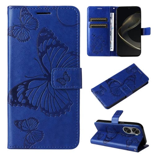 Funda de Cuero con Tapa y Mariposa 3D para Huawei Nova 12 Se/Nova 11 Se (Azul)