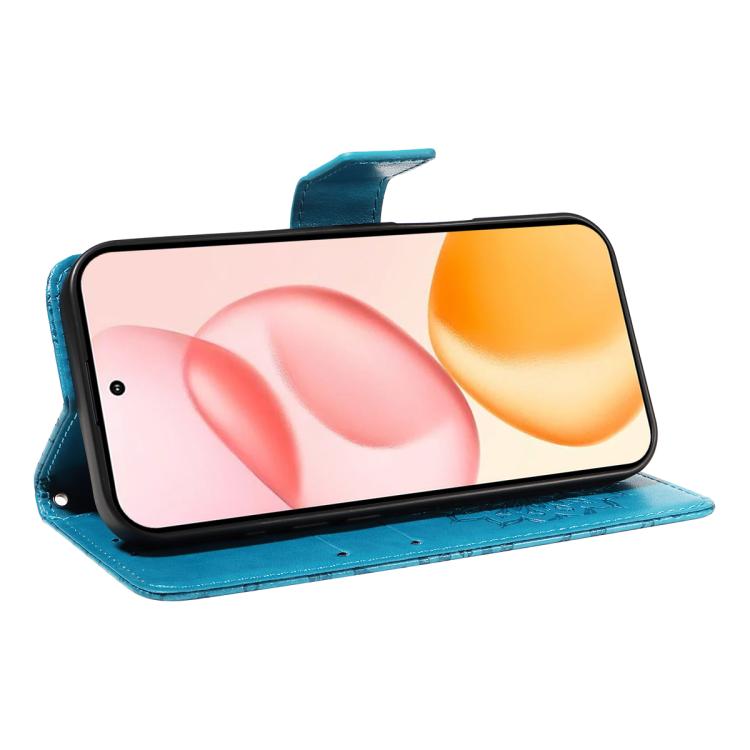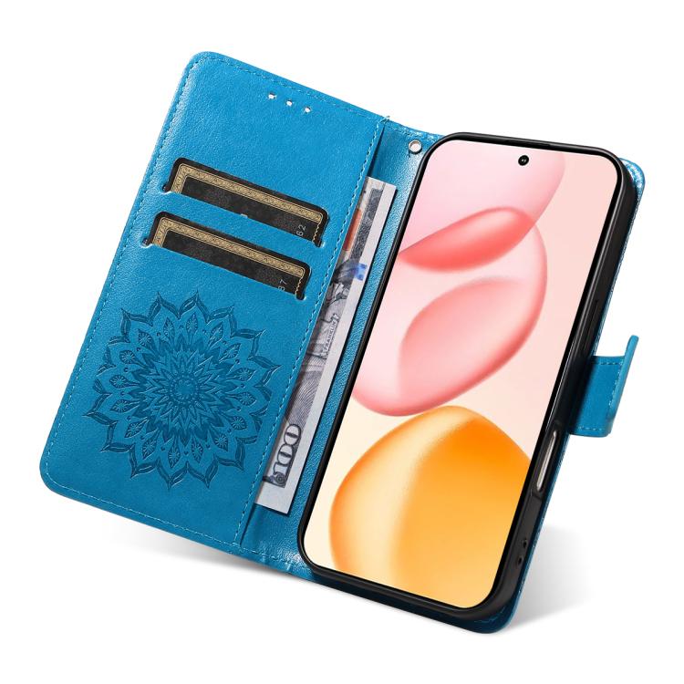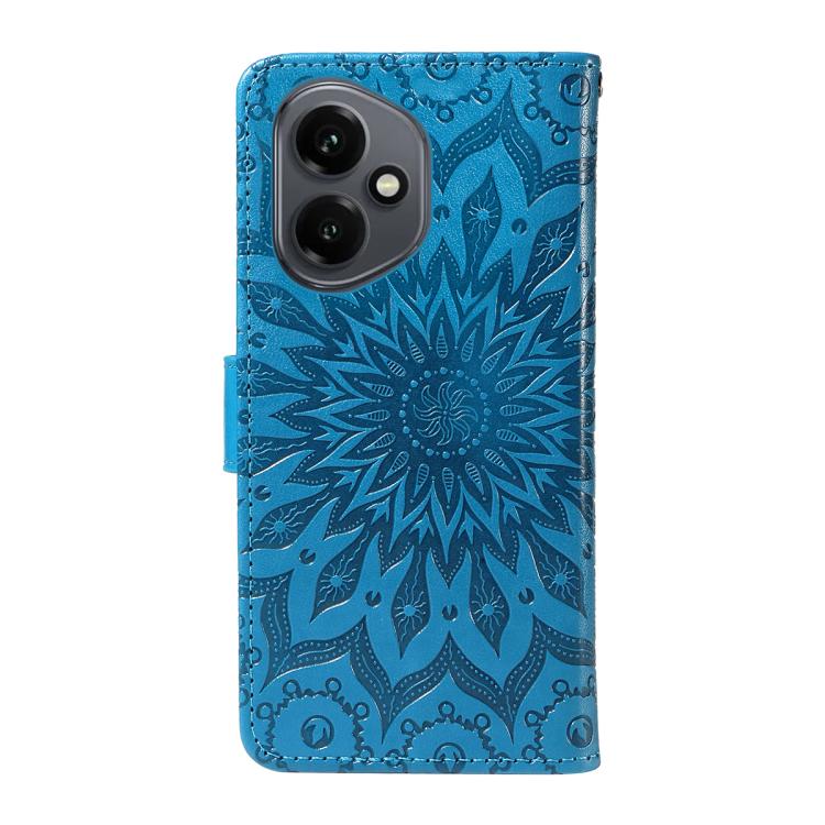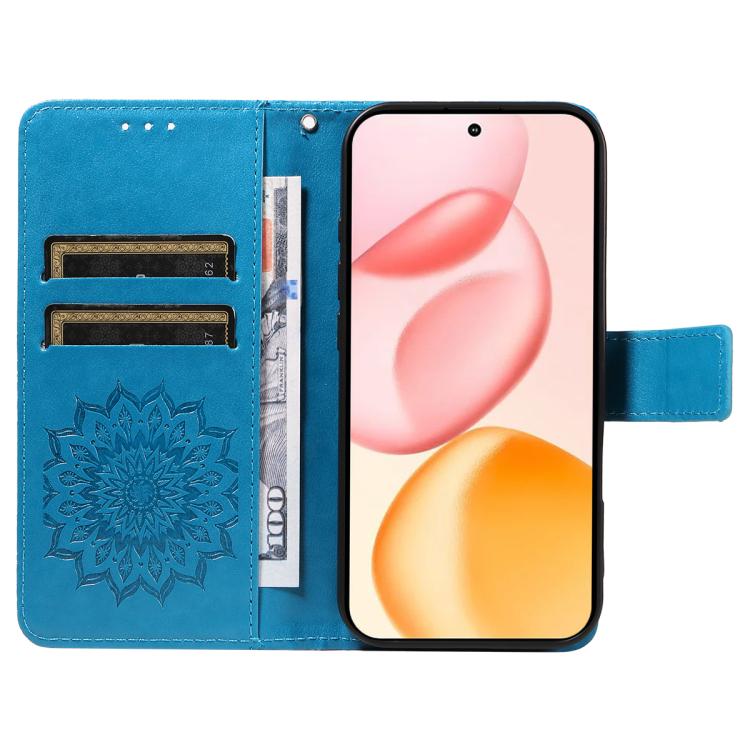 Funda de cuero con tapa y estampado de girasoles en relieve para Honor 400 Global (156,5 mm) (azul)