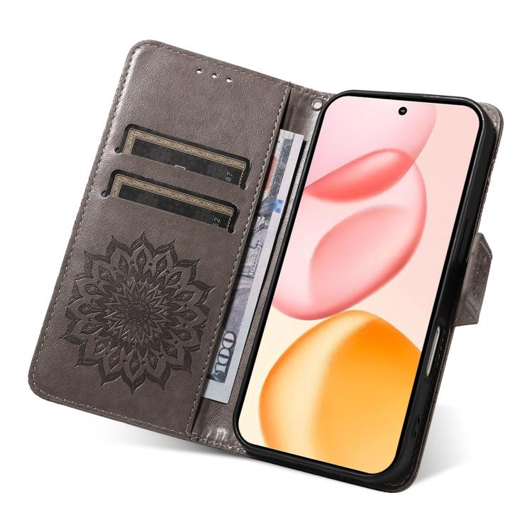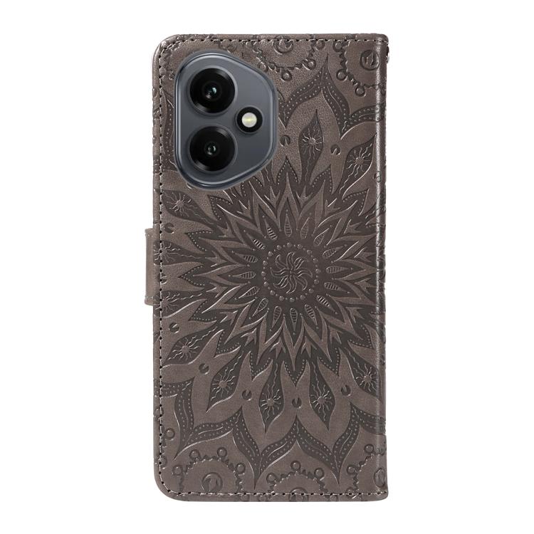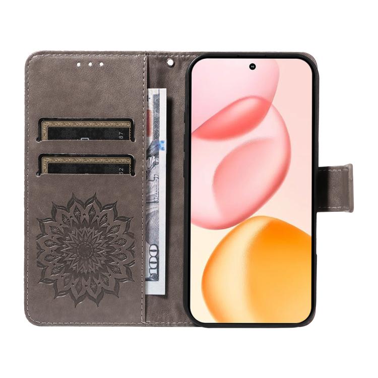 Funda de cuero con tapa y estampado de girasoles en relieve para Honor 400 Global (156,5 mm) (gris)