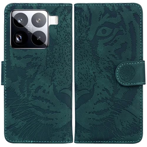 Funda De Cuero Con Tapa Y Estampado De Tigre Para Xiaomi 15 Pro (Verde)