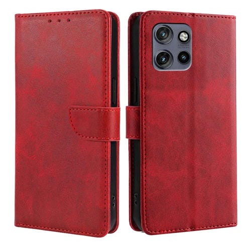 Funda de Cuero con Tapa y Hebilla para Motorola Edge 50 Neo 5G (Rojo)