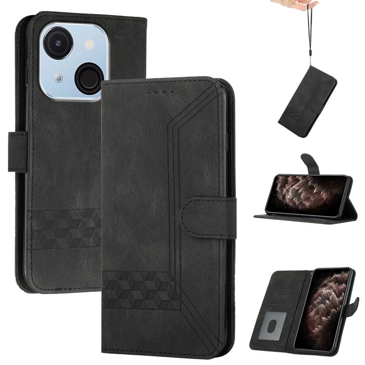 Funda de Cuero con Tapa y Tacto de Piel Cúbica para Itel A50C (Negra)