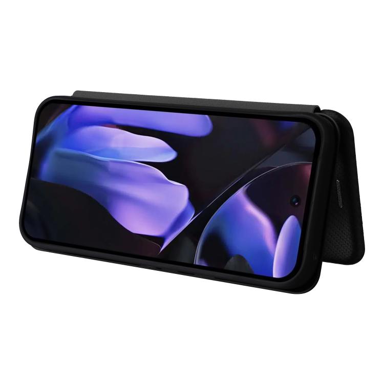 Funda de Cuero con Tapa y Textura de Fibra de Carbono para Google Pixel 9A (Negra)