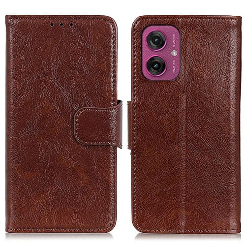 Funda de Cuero con Tapa y Textura Nappa para Motorola Moto G55 5G (Marrón)