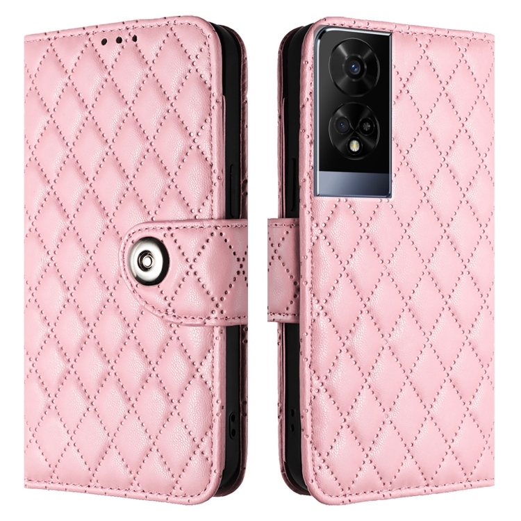 Funda de Cuero con Tapa y Textura Rombal para TCL 50 Xe 5G con Cordón (Rosa)