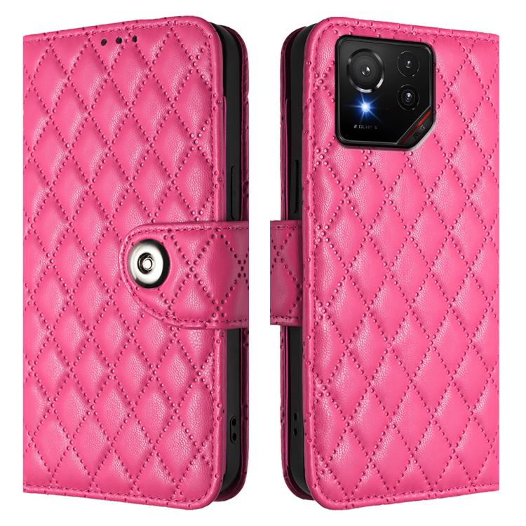 Funda de Cuero con Textura Rómbica y Cordón para Asus Rog Phone 9/9 Pro (Rosa)