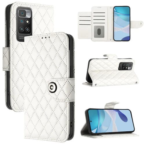 Funda de Cuero con Tapa y Textura Rómbica para Redmi 10 / Redmi 10 2022 con Cordón (Blanco)