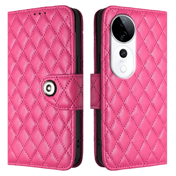 Funda de Cuero con Tapa y Textura Rómbica para Teléfono Vivo S19 Pro con Cordón (Rosa Rojo)