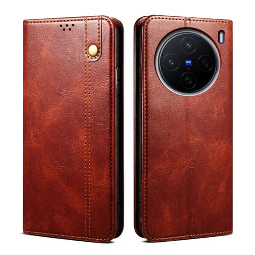 Funda de Cuero con Textura Crazy Horse y Cera de Aceite para Vivo X200 Pro Mini (Marrón)