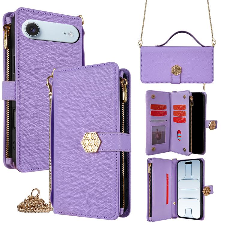 Funda de cuero con textura cruzada y asa cruzada para iPhone Air (morado)