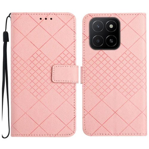 Funda de Cuero Honor X5B 4G y X5B Plus 4G Textura Cuadrícula Rómbica (Rosa)
