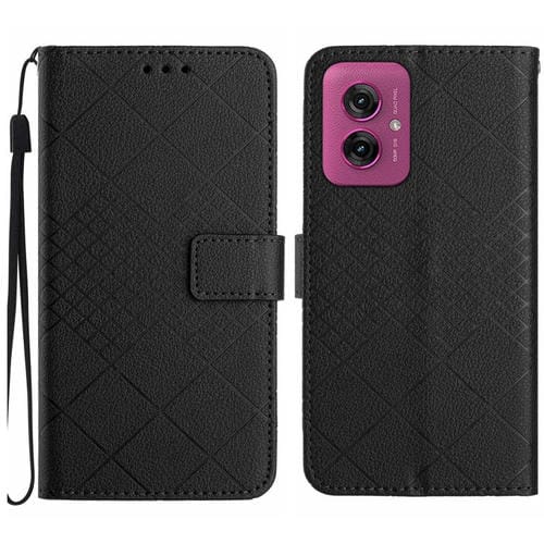 Funda de Cuero con Textura de Cuadrícula Rómbica para Motorola Moto G55 5G (Negra)