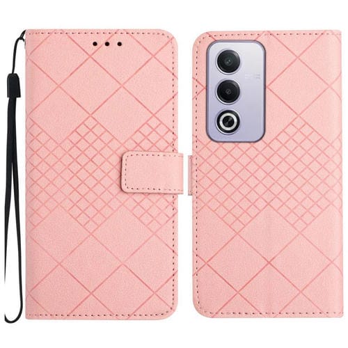 Funda de Cuero con Textura de Cuadrícula Rómbica para Oppo A80 Eu/A3 Pro Global (Rosa)