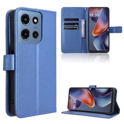 Funda de Cuero con Textura de Diamante para Motorola Moto G 5G (2025) (Azul)