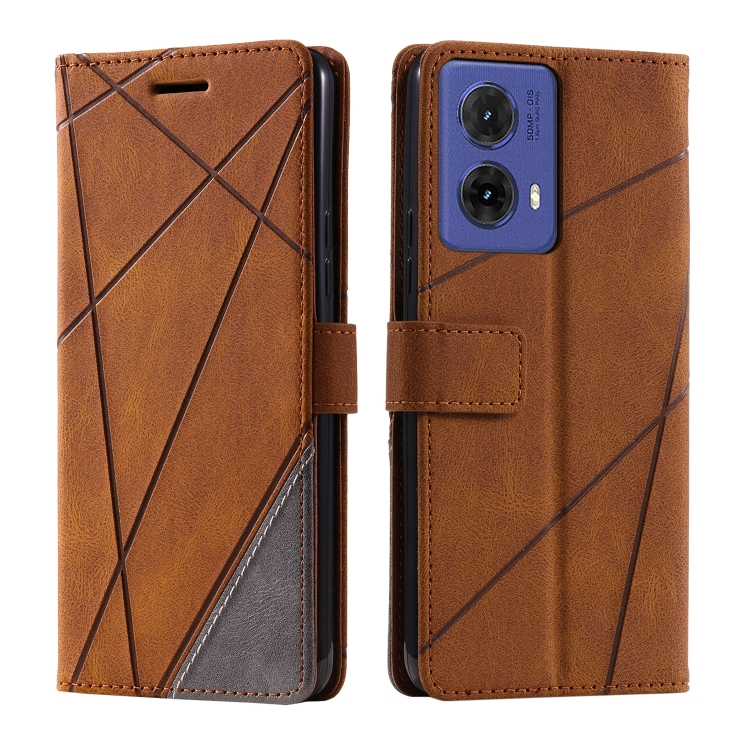 Funda de Cuero con Textura de Piel Sintética para Motorola Moto G85 (Marrón)