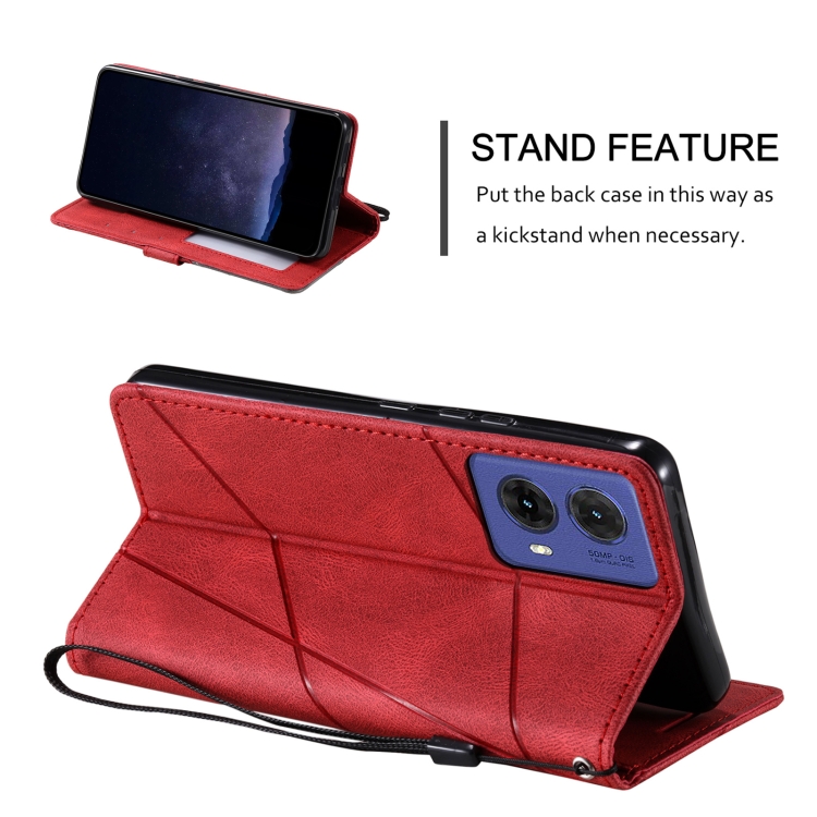Funda de Cuero con Textura de Piel Sintética para Motorola Moto G85 (Rojo)