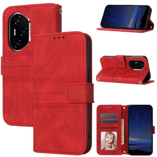 Funda de Cuero con Textura y Rayas en Relieve para Honor 300 Pro 5G/300 Ultra 5G (Rojo)
