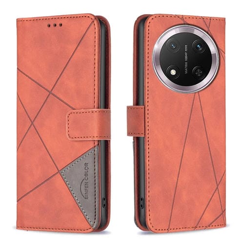 Funda de Cuero con Textura de Rombos y Hebilla Magnética para Honor X9C 5G (Marrón)