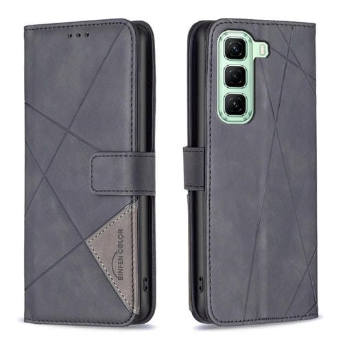 Funda de Cuero con Textura de Rombos y Hebilla Magnética para Infinix Hot 50 4G (Negro)