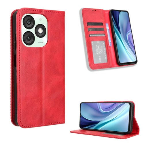 Funda de Cuero Itel A50 con Textura Retro y Hebilla Magnética (Rojo)