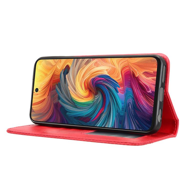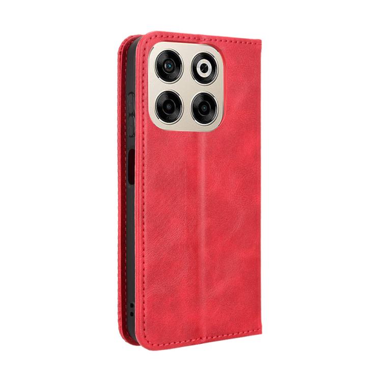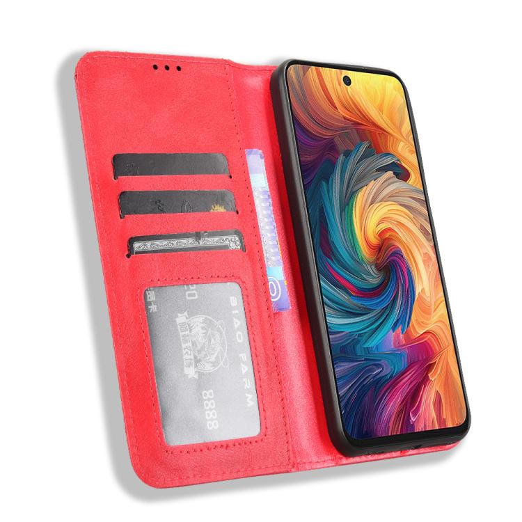 Funda de Cuero para ZTE Blade V70 4G con Textura Retro y Hebilla Magnética (Roja)
