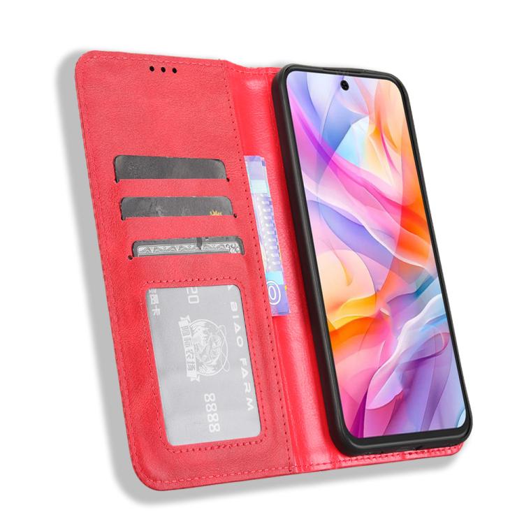 Funda de Cuero ZTE Blade V70 Design 4G Textura Retro Hebilla Magnética (Roja)