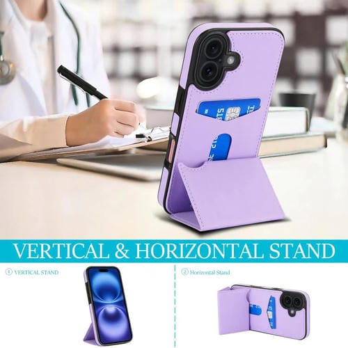 Funda de cuero con tres pliegues y ranura para tarjetas para iPhone 17 (morado claro)
