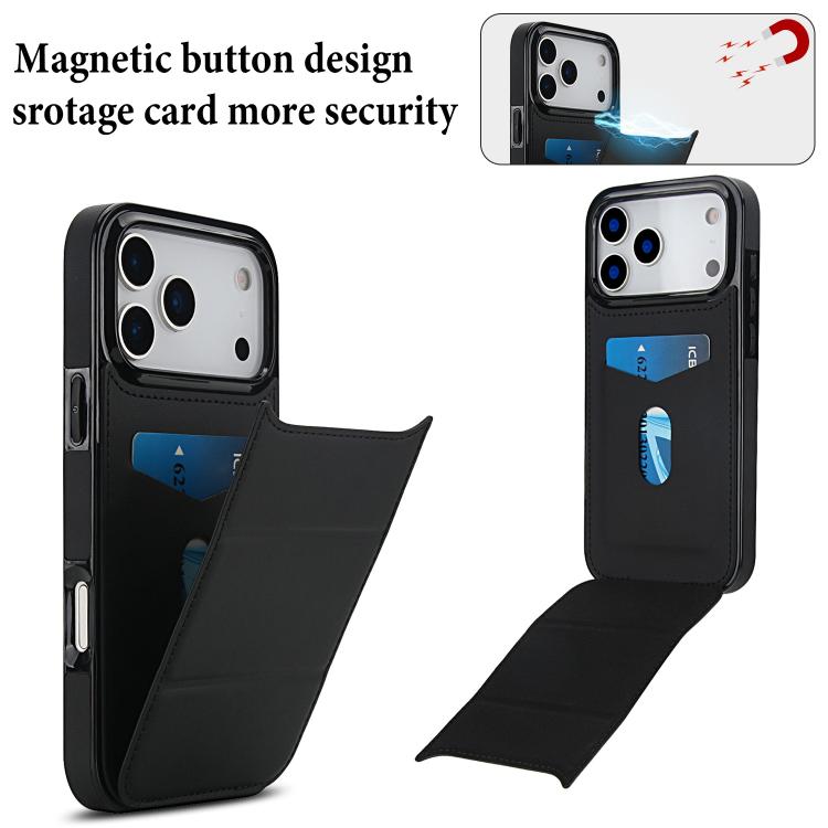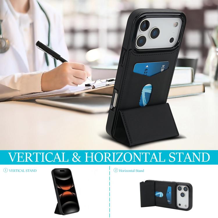 Funda de cuero con tres pliegues y ranura para tarjetas para iPhone 17 Pro Max (negra)