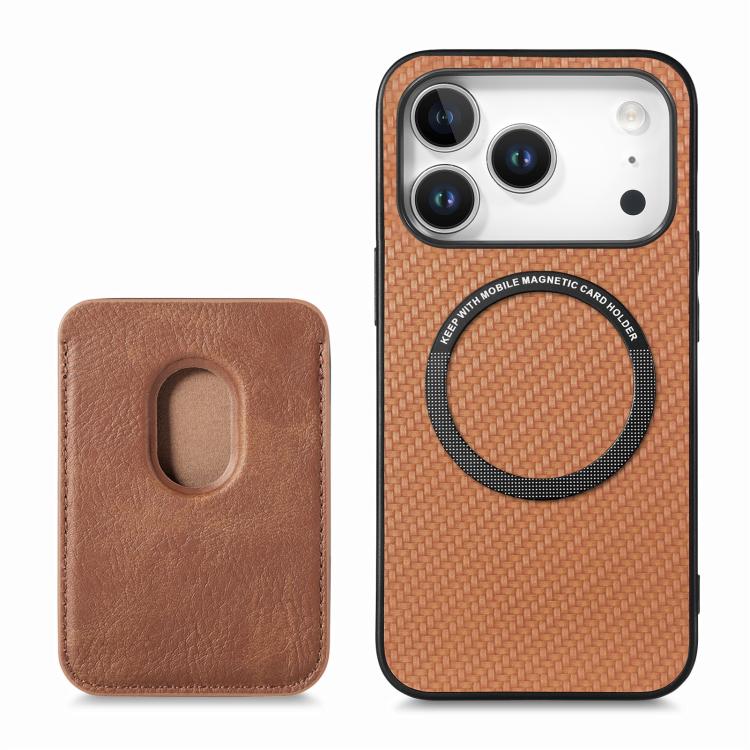 Funda de cuero de fibra de carbono con tarjetero Magsafe para iPhone 17 Pro (marrón)