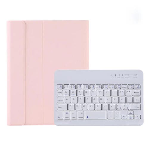 Funda de Cuero Teclado Bluetooth Desmontable A06B con Ranura de Lápiz y Soporte para iPad Mini 6 (Rosa)