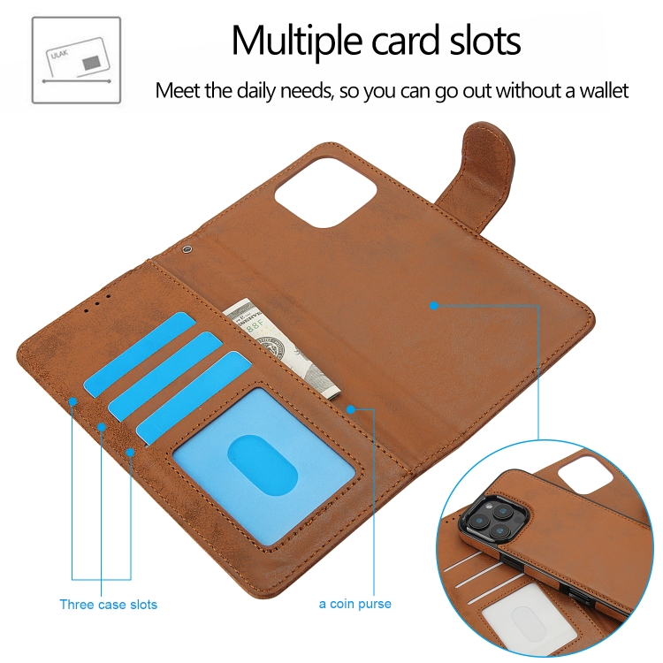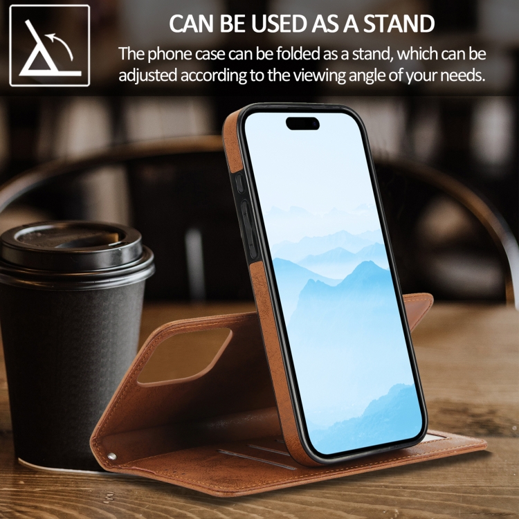 Funda de Cuero Desmontable 2 En 1 para iPhone 16 Pro Max (Marrón)