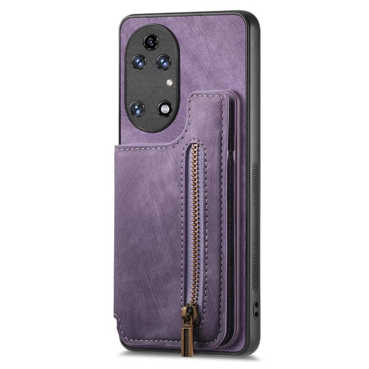 Funda de Cuero Estilo Retro con Cremallera para Huawei P50 (Morado)