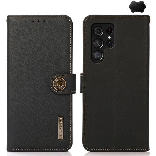 Funda Cuero Genuino Khazneh Custer para Samsung Galaxy S25 Ultra 5G (Negro)