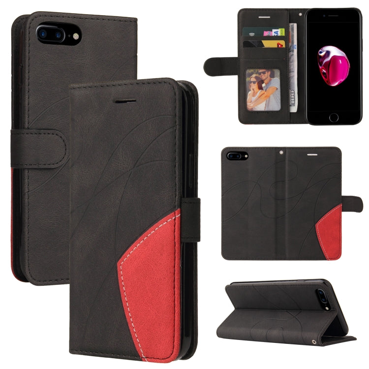 Funda de Cuero Horizontal Doble Color con Soporte y Ranuras para Tarjetas para iPhone 8 Plus / 7 Plus (Negro)