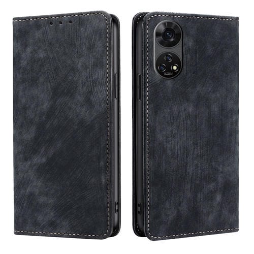 Funda de Cuero Magnética con Cepillo Antirrobo RFID para ZTE Anshin (Negra)