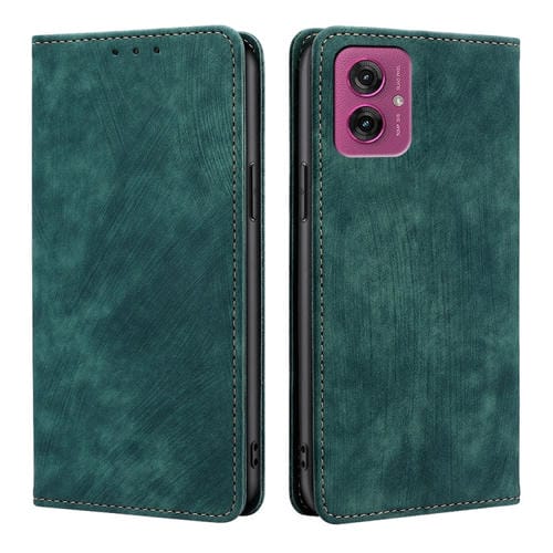 Funda de Cuero Magnética con Cepillo Antirrobo RFID para Motorola Moto G55 5G (Verde)