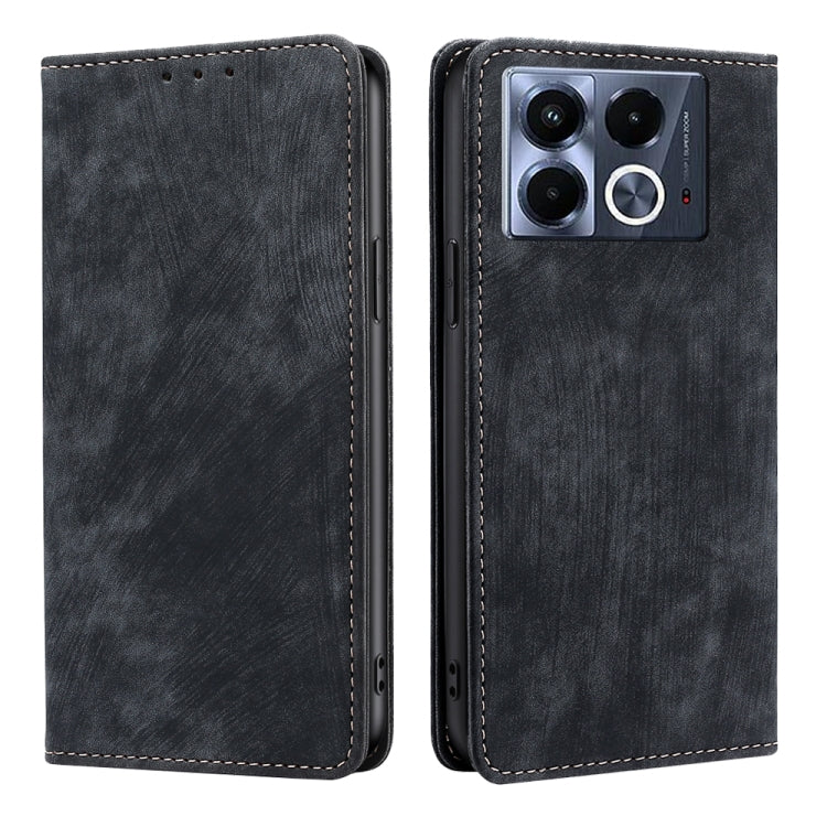 Funda de Cuero Magnética con Cepillo Antirrobo Rfid para Teléfono Infinix Note 40 5G (Negro)