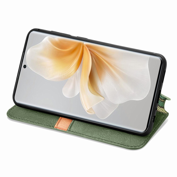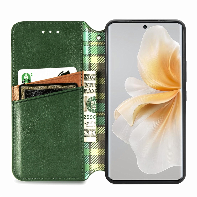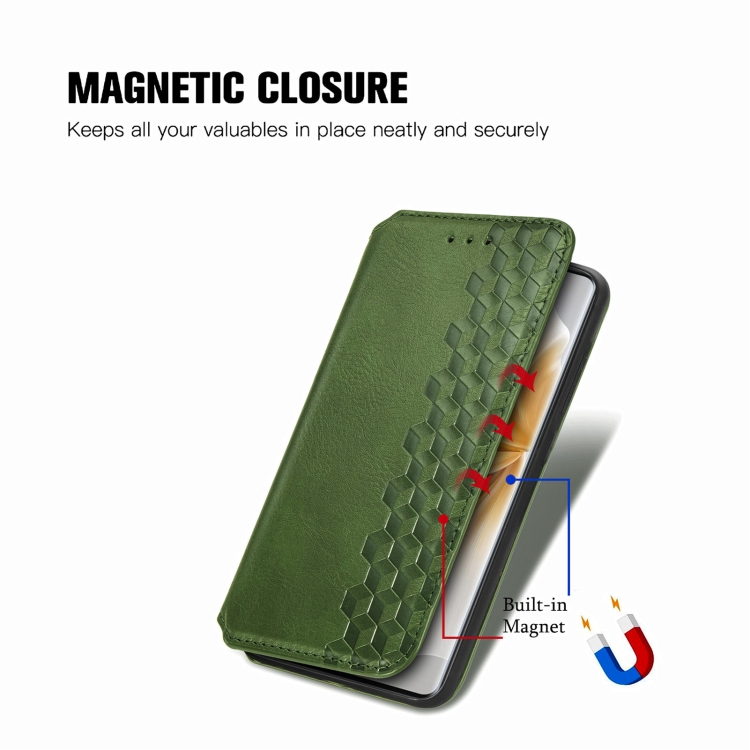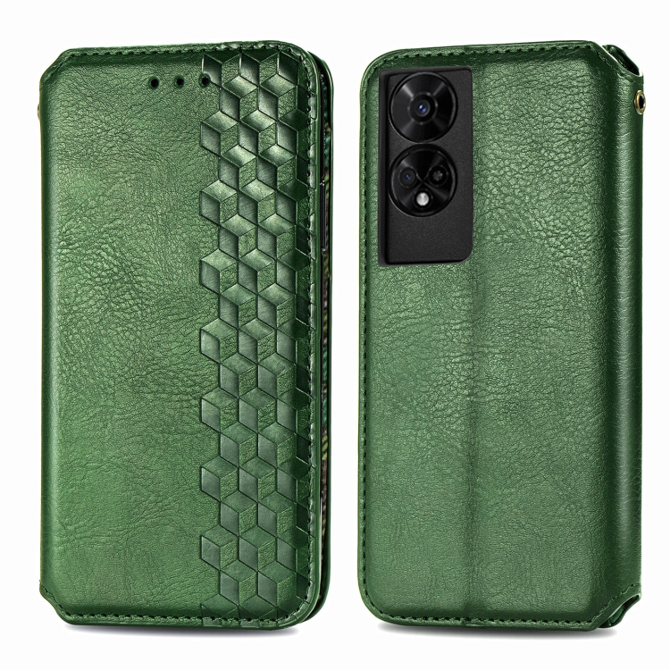 Funda de Cuero Magnética con Rejilla Cúbica para TCL 50 5G (Verde)