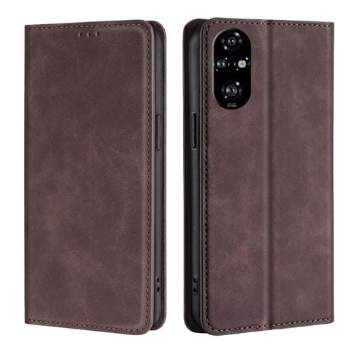 Funda de Cuero Magnética para Honor 200 Pro 5G con Tacto de Piel (Marrón Oscuro)