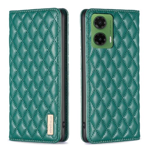 Funda de Cuero Magnética con Tapa Tipo Diamante para Motorola Moto G35 (Verde)