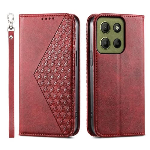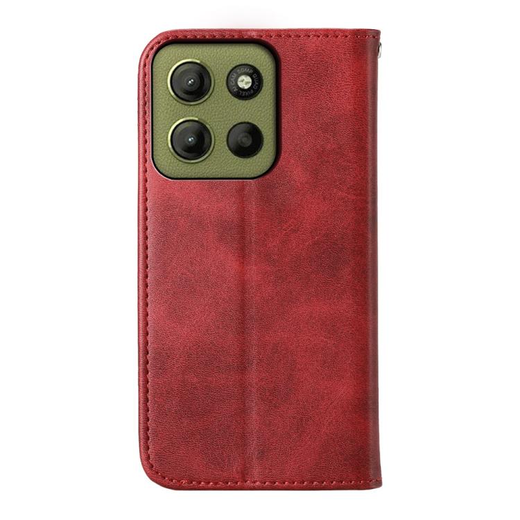 Funda de Cuero Magnética para Motorola Moto G15 (Rojo) con Textura de Becerro y Cuadrícula Cúbica