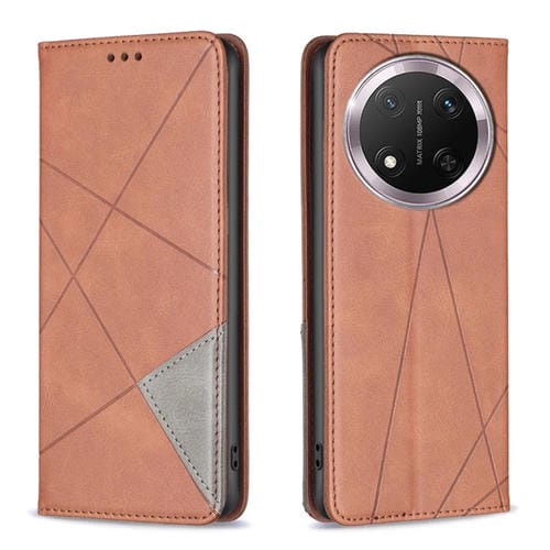 Funda de Cuero Magnética con Textura de Rombos para Honor X9C 5G (Marrón)